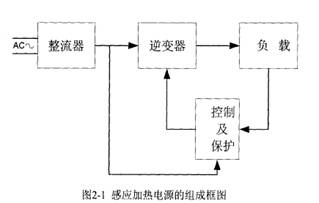 隨著(zhù)電力電子技術(shù)的不斷發(fā)展和實(shí)際工業(yè)生產(chǎn)等應用領(lǐng)域中的不同要求的提出,感應加熱電源發(fā)展出了多種不同的種類(lèi)形式。但總體上來(lái)說(shuō),感應加熱電源主要由以下四個(gè)部分組成整流器一,逆變器一,諧振槽路及負載和控制及保護環(huán)節。一般的感應加熱電源的組成框圖如圖2-1所示