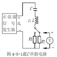 1. RLC串聯(lián)電路。在圖4-8-1所示的電路中,當正弦交流信號源uS的頻率 f改變時(shí),電路中的感抗、容抗隨之而變,電路中的電流也隨f而變。對于RLC串聯(lián)諧振電路,電路的復阻抗Z=R+j[ωL-1/(ωC)] 。