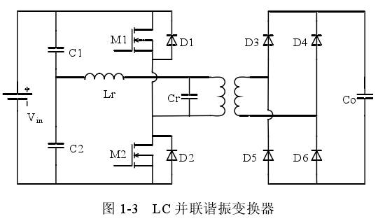 (2)LC 并聯(lián)諧振高壓電源 LC并聯(lián)諧振變換器如下圖1-3所示。