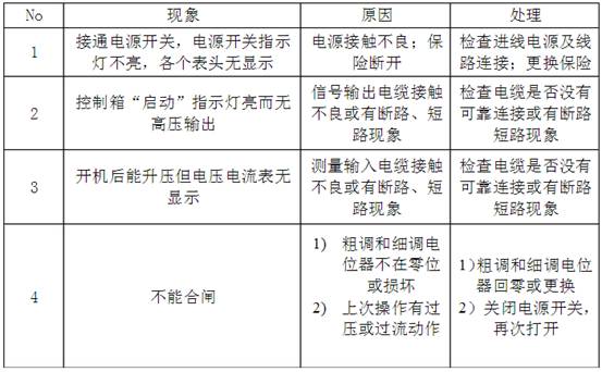 第六,高頻直流高壓發(fā)生器控制箱電源為交流AC220V±10%,50Hz。如果電源經(jīng)1/1隔離變或現場(chǎng)用自發(fā)電源,則必須人為將電源有一點(diǎn)與大地聯(lián)接。