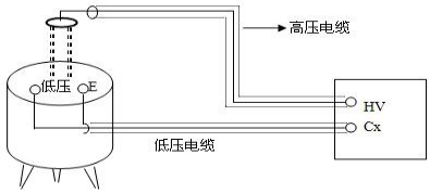 (3)反接線(xiàn)時(shí):將高壓電纜插頭插入后門(mén)HV插座中,將高壓電纜接地端頭接入接地柱中,將另一端的紅色鱷魚(yú)夾夾到被測試品的高端引線(xiàn)上,黑色夾子懸空或接屏蔽裝置。Cx插座不用。