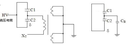 如圖11所示,用反接線(xiàn)方式測量,將C2末端δ與C1首端相連,接儀器HV口(用高壓電纜)XT懸空,中壓互感器二次線(xiàn)圈短路接地。