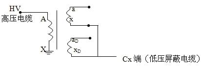 X接地點(diǎn)打開(kāi),使A,X相連后接儀器HV端,低壓端所有繞組短接后接Cx端。