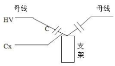 斷口電容的介損及電容測量時(shí),將高壓電纜和Cx測量電纜加到斷口電容兩端,用正接線(xiàn)方式測量。如圖14所示: