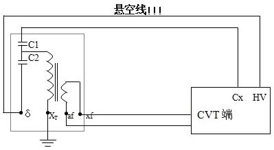 如果現場(chǎng)CB值較小,現場(chǎng)干擾又較大,反接線(xiàn)所測得的數據誤差可能較大,這時(shí)可選擇正接線(xiàn)方式測量。首先把CVT二次引線(xiàn)全部斷開(kāi),并將二次線(xiàn)圈短路,然后接儀器的CX測量線(xiàn)。XT懸空。接線(xiàn)方式見(jiàn)圖12所示: