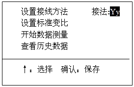此時(shí),按“↑” 鍵選擇接法。按“確認” 鍵保存接法,返回主菜單: