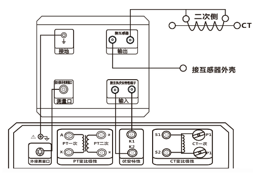 交流耐壓升壓器接線(xiàn):升壓器接線(xiàn)方式如圖九所示,試驗方法與伏安主機單機方式相同。