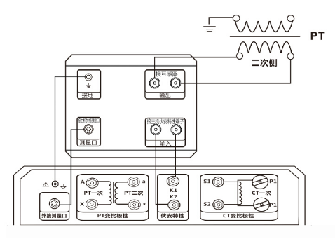 交流耐壓升壓器接線(xiàn):升壓器接線(xiàn)方式如圖五所示,試驗方法與伏安主機單機方式相同。