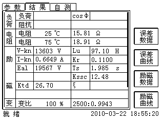 極限電動(dòng)勢 | 單位:V,根據CT銘牌和75℃電阻計算的極限電動(dòng)勢 | √ | √ | √ | √ |