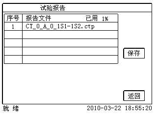 報告界面,如圖2.12。選擇打開(kāi)某個(gè)試驗報告,該報告的參數信息和數據會(huì )顯示到各個(gè)頁(yè)的對應欄目中。