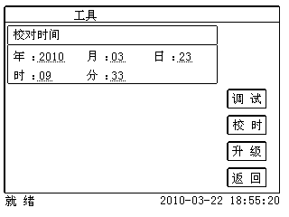 系統工具界面,如圖2.14。在該界面中可以進(jìn)行時(shí)間校對、系統升級等操作。其中:調試用于出廠(chǎng)調試,升級用于軟件界面的升級。