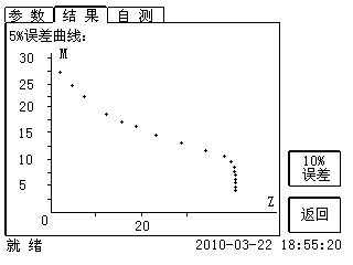 選擇誤差曲線(xiàn),將顯示10%(或5%)誤差情況下,額定一次電流倍數與最大負荷之間的關(guān)系曲線(xiàn)界面,如圖2.17。界面中橫坐標為額定一次電流倍數,縱坐標為允許的最大負荷。