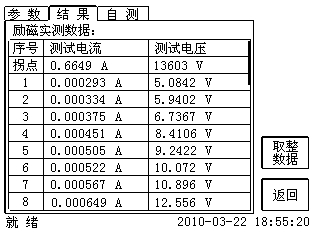 選擇勵磁數據將顯示勵磁數據界面,如圖2.18,界面中給出了自動(dòng)計算出來(lái)的拐點(diǎn)電壓和拐點(diǎn)電流。