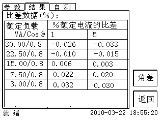 選擇比值差表將顯示不同額定電流百分比和不同負荷值情況下被測CT的比值差表,如圖2.20: