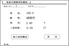 當電流互感器的銘牌字跡不清、或銘牌丟失的情況下,可以使用該界面測量電流互感器的實(shí)際變比,以及該互感器的二次繞組電阻。