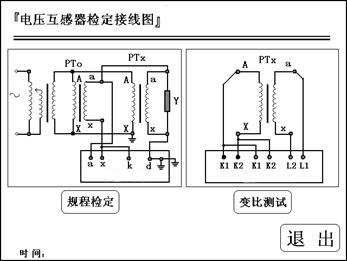 該部分功能包括電壓互感器檢定和電壓互感器變比測試功能,接線(xiàn)圖界面顯示如下: