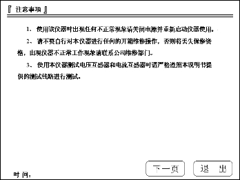 退 出:退出到上一顯示界面(電流互感器測試功能選擇界面)。